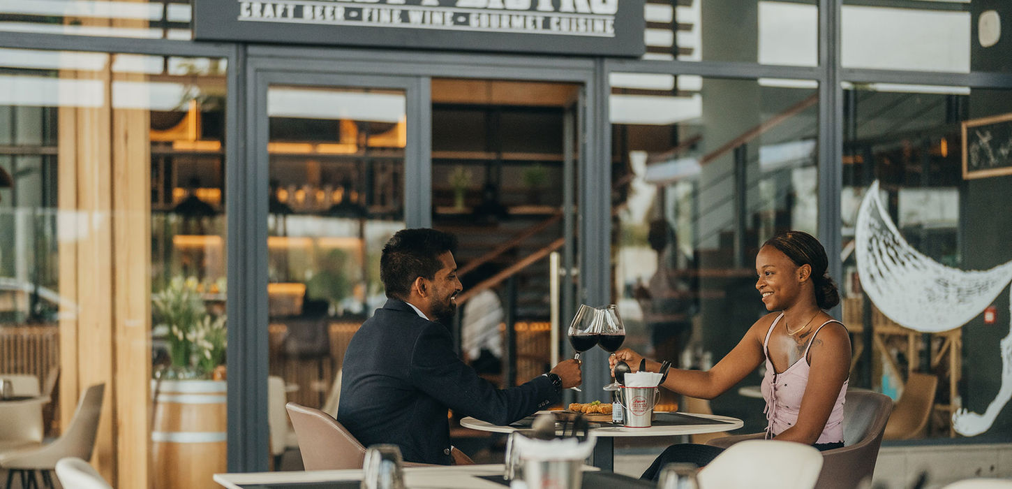 Soak up the sun and fresh air on our ground-floor terrace. Thirst Bistro is proud to offer an open-air space where guests can relax and enjoy delicious food, fine wines, or an ice-cold beer. A convenient and welcoming setting, perfect for laid-back moments and gorgeous sunset views.